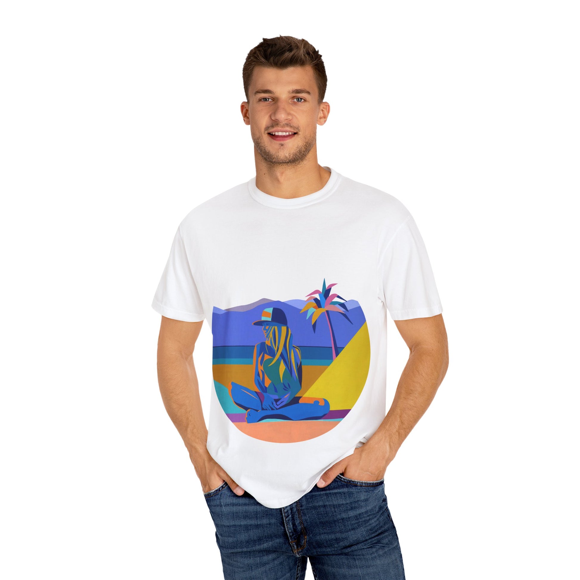 The SoCal Spirit Unisex tee is a must-have featuring a popular painting by Armelle Ngo. Made with 100% cotton, it offers a relaxed fit and its soft, garment-dyed fabric provides a unique texture and appearance, making it the perfect combo of fashion and sustainability.